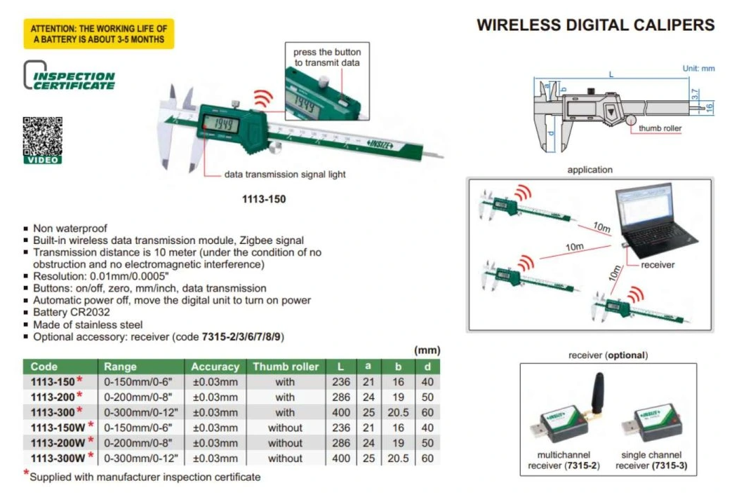 Digitálne posuvné meradlo 0-150 mm, bezdrôtový prenos dát, Insize