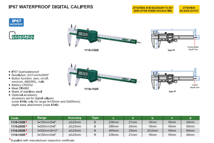 Digitálne posuvné meradlo 0-300 mm IP67, Insize