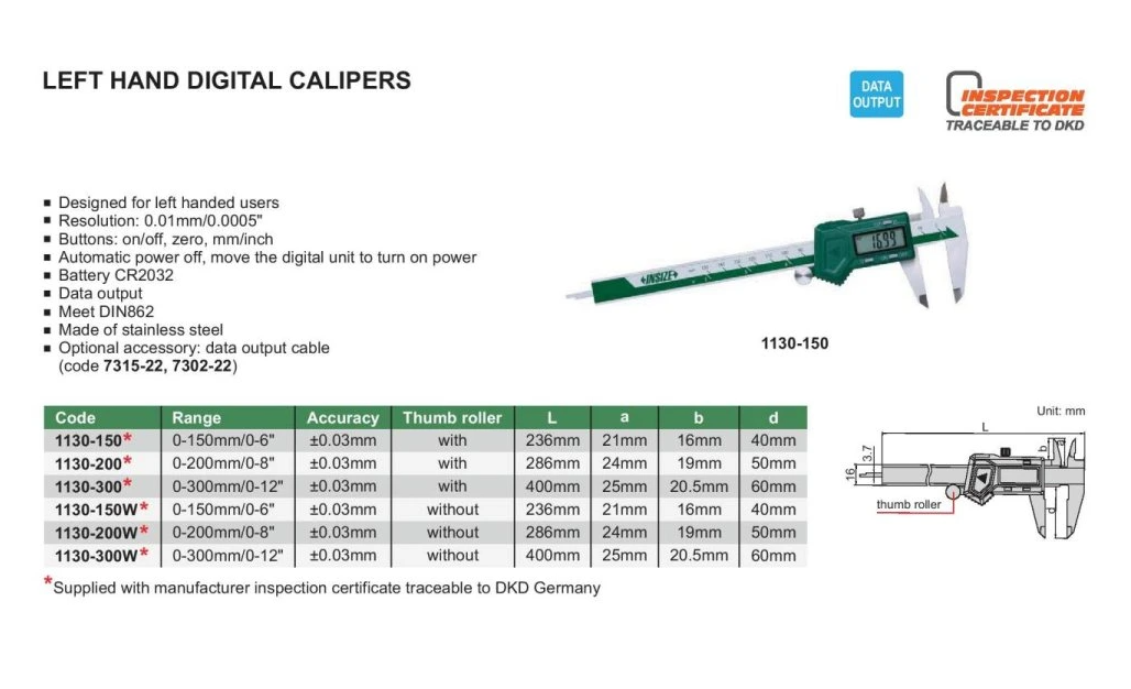 Digitálne posuvné meradlo 0-150 mm pre ľavákov, Insize