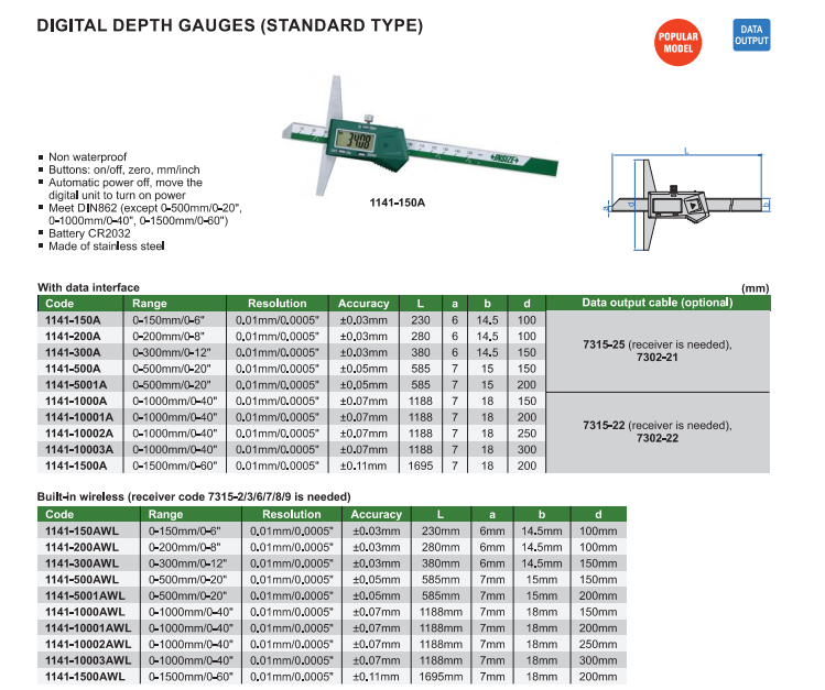 Digitálny hĺbkomer 0-500 mm, Insize