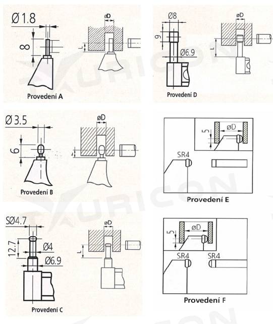 Meracie plochy: vreteno osadené tvrdokovom, jemne lapované; dotyk - kalená oceľ