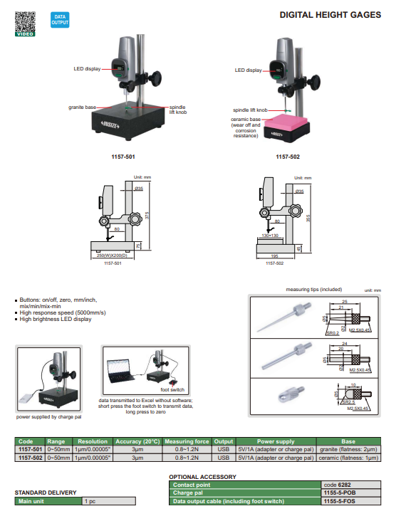Digitálny výškomer 0-50 mm s keramickým stolom, Insize