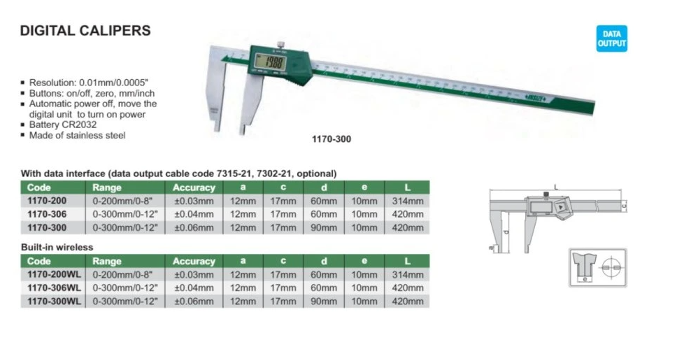 S výstupom dát, bez hĺbkomera a posuvného kolieska