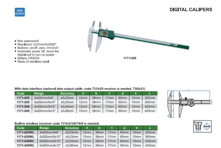 S výstupom dát, bez hĺbkomera a posuvného kolieska