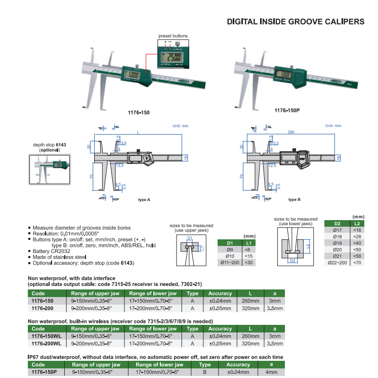Digitálne posuvné meradlo 9-200 mm, na vnútorné zápichy typ 4, Insize