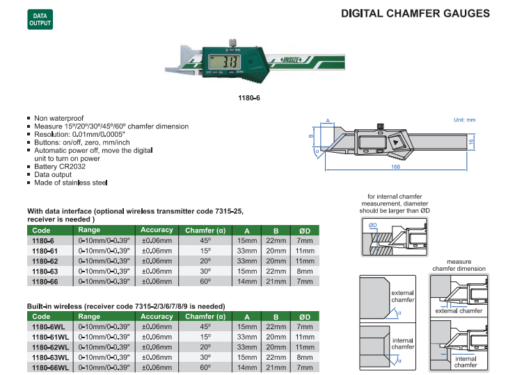 Digitálne posuvné meradlo skosenia 0-10 mm/20°, Insize