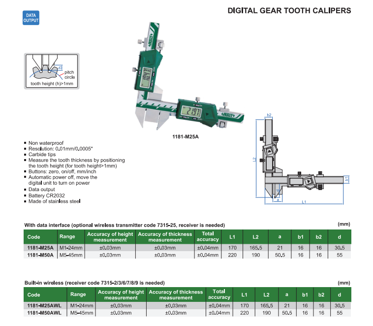 Kombinované meradlo pre meranie hrúbky aj výšky ozubených kolies