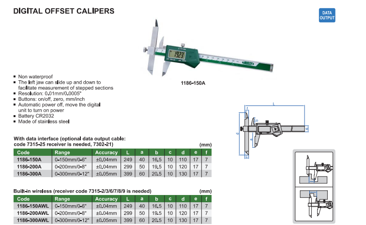 S výstupom dát, bez hĺbkomera a posuvného kolieska