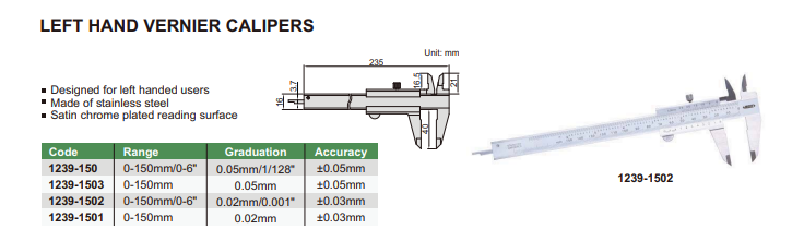 Analógové posuvné meradlo 0-150 mm pre ľavákov, Insize
