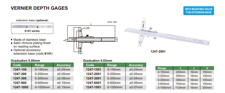 Analógový hĺbkomer 0-300 mm/0,02 mm, Insize