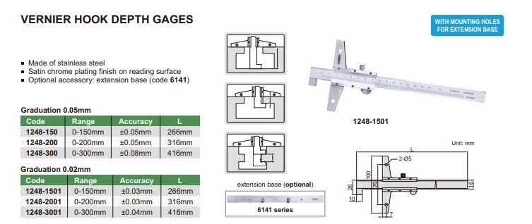 Hĺbkomer s hákom je vhodný na meranie hĺbky drážok, otvorov a iných dutín
