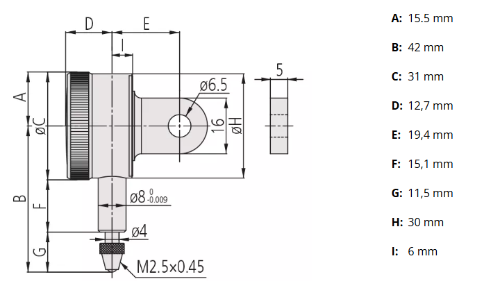 Číselníkový odchýlkomer malé prevedenie 2,5 mm/0,01 mm, Mitutoyo