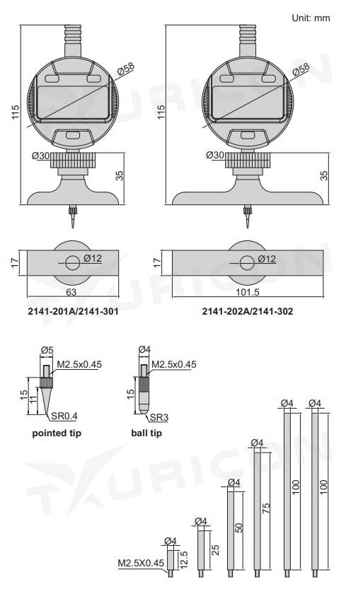 Funkcie: on/off, mm/inch, zero, ABS, data preset, zmena smeru odčítania
