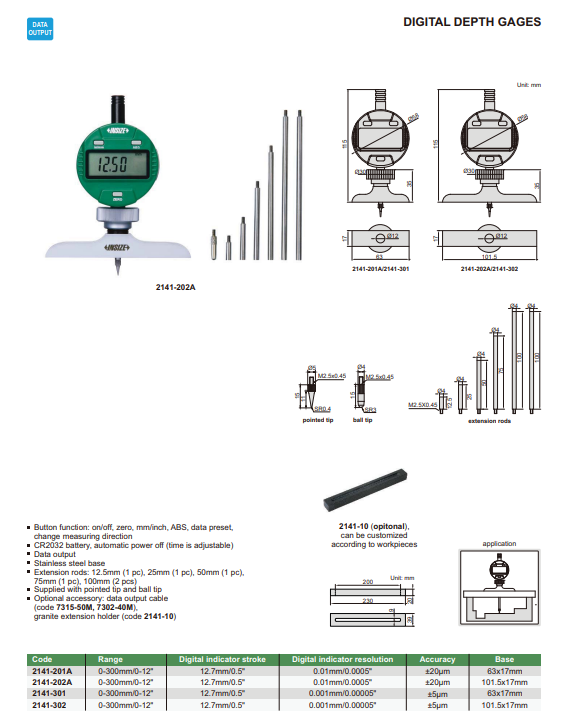 Digitálny hĺbkomer 0-300 mm s kruhovou základňou, Insize