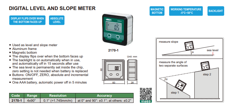 Digitálna vodováha a sklonomer 4x90°, Insize