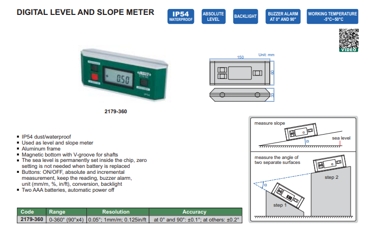 Digitálna magnetická vodováha a sklonomer 0-360°, Insize