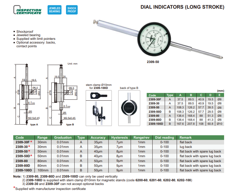 Číselníkový odchýlkomer s veľkým rozsahom 30 mm/0,01 mm, Insize