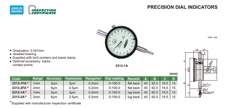 Číselníkový odchýlkomer s vysokou presnosťou 2 mm/0,001 mm, Insize