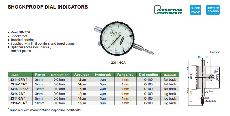 Číselníkový odchýlkomer 3 mm/0,01 mm, Insize