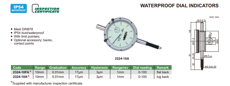 Číselníkový odchýlkomer 10 mm/0,01 mm s IP54, Insize