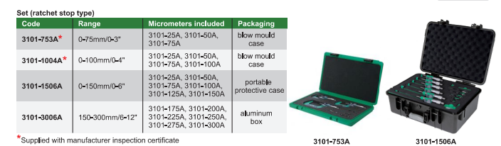 Obsah sady: 6 ks mikrometrov + 5 ks nastavovacích mierok