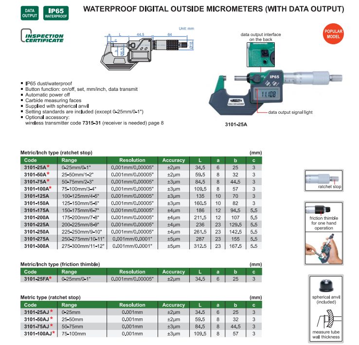 Vodeodolný a prachuvzdorný mikrometer - stupeň ochrany IP65