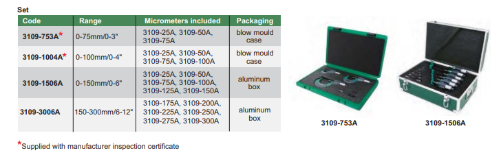 Sada digitálnych mikrometrov 0-100 mm, Insize