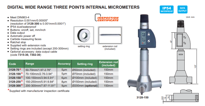 Digitálny trojdotykový dutinomer 100-150 mm so zväčšeným rozsahom, Insize