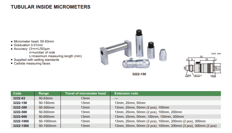 Mikrometrický odpich skladací 50-600 mm, Insize