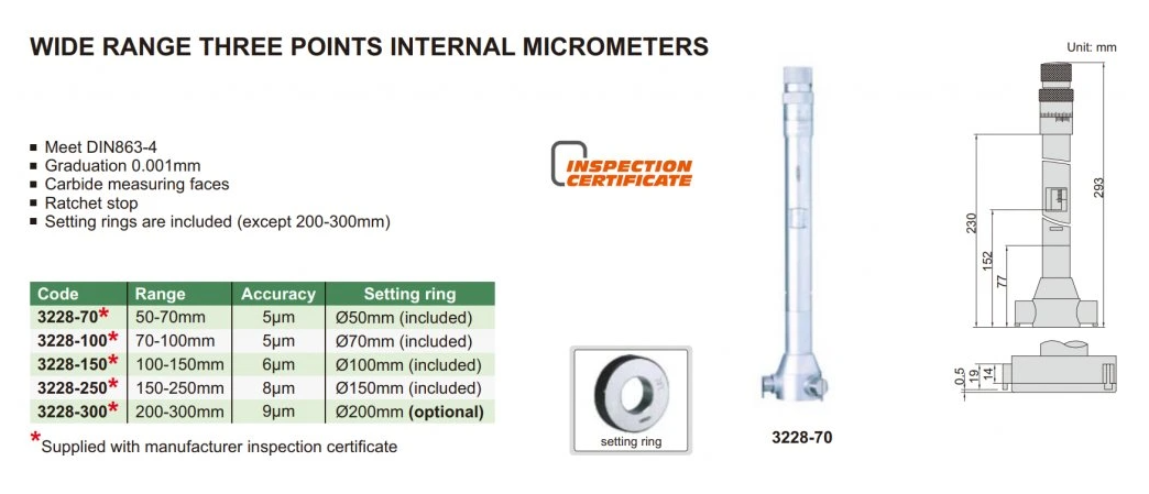 Analógový trojdotykový dutinomer 100-150 mm so zväčšeným rozsahom, Insize