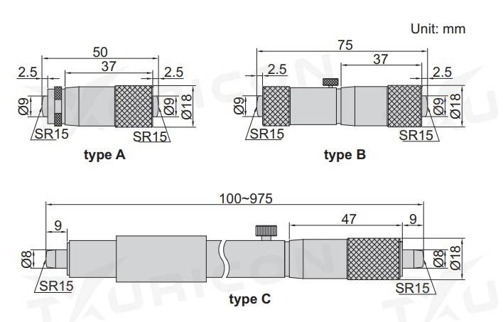 Mikrometrický odpich používaný na meranie vnútorných rozmerov, ako sú priemery otvorov a drážok