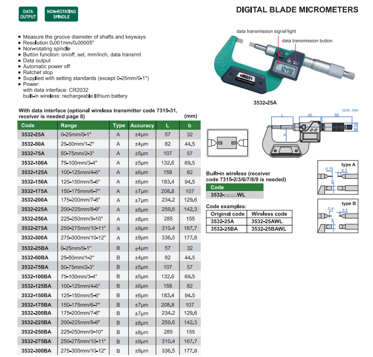 Digitálny mikrometer 25-50 mm s nožovými dotykmi, typ A, Insize