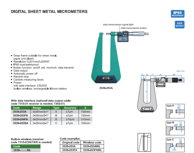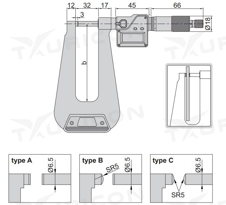 Digitálny mikrometer 0-25 mm na meranie hrúbky plechu, typ B, Insize