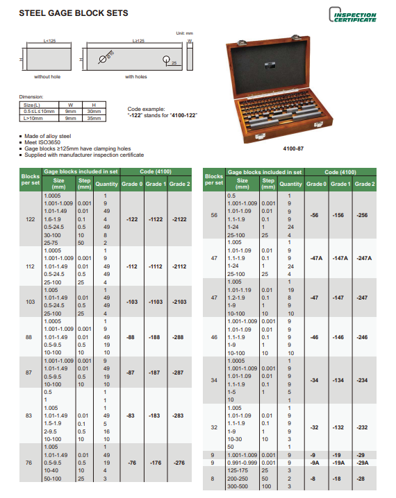 Koncové mierky oceľové 9 ks ISO 3650/2, Insize