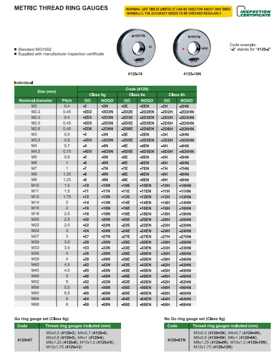 Sada závitových kalibrov krúžkov M3-M12 6g dobré, Insize