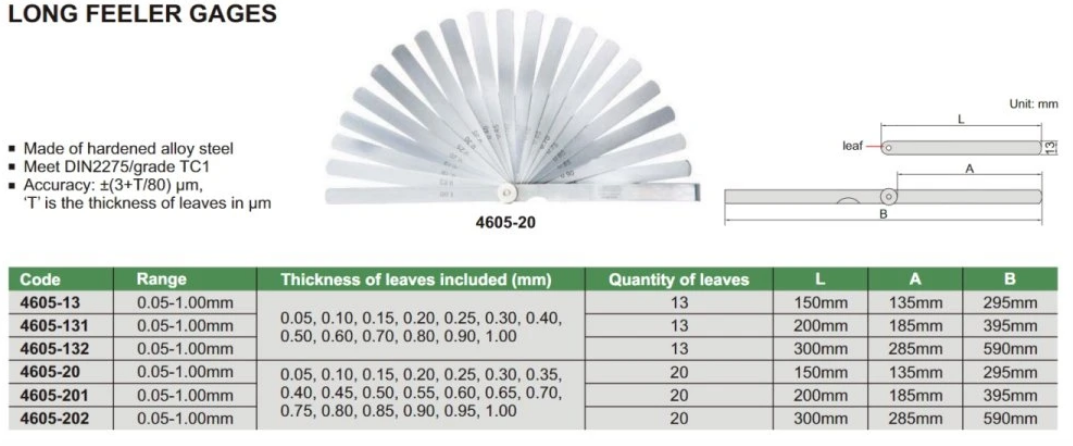 Špáromer 0,05-1,00 mm, dĺžka 150 mm, 13 listov, Insize
