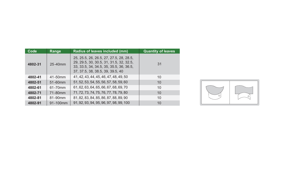 Rádiusové mierky 25-40 mm, Insize