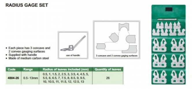 Sada rádiusových šablón 0,5-13 mm, Insize
