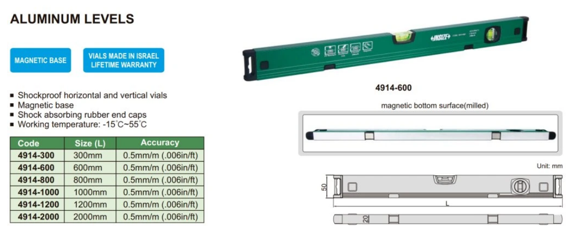 Magnetická vodováha z hliníku 2000 mm, Insize