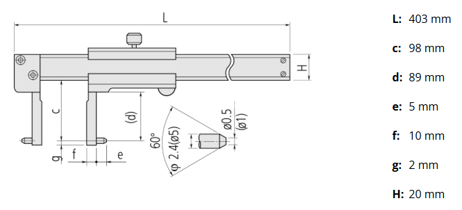Posuvné meradlo s úzkymi čeľusťami a špicatými hrotmi: