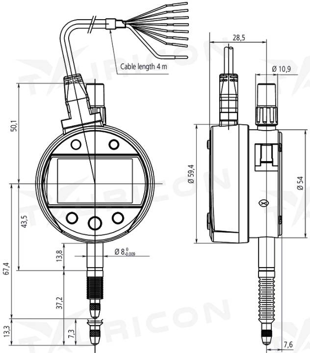 - funkcie: výstup signálu +n.Ok, OK, -n.Ok, Vyvolanie predvolby, Nulovanie/ABS prepínanie, Hold, 3 x Preset, Zap./Vyp., Analógový prepínač rozsahu merania, Posúdenie tolerancii LED, Lock, Výpočtové funkcie, Prepínanie smeru odčítania, Max./Min./Hádzanie.