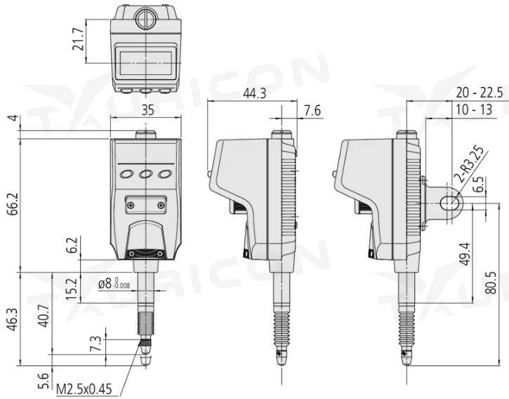 - funkcie: Vyhodnotenie Ok/n.Ok, Výstup dát, Zap./Vyp., Data/Hold, Preset, Prepínanie smeru odčítania