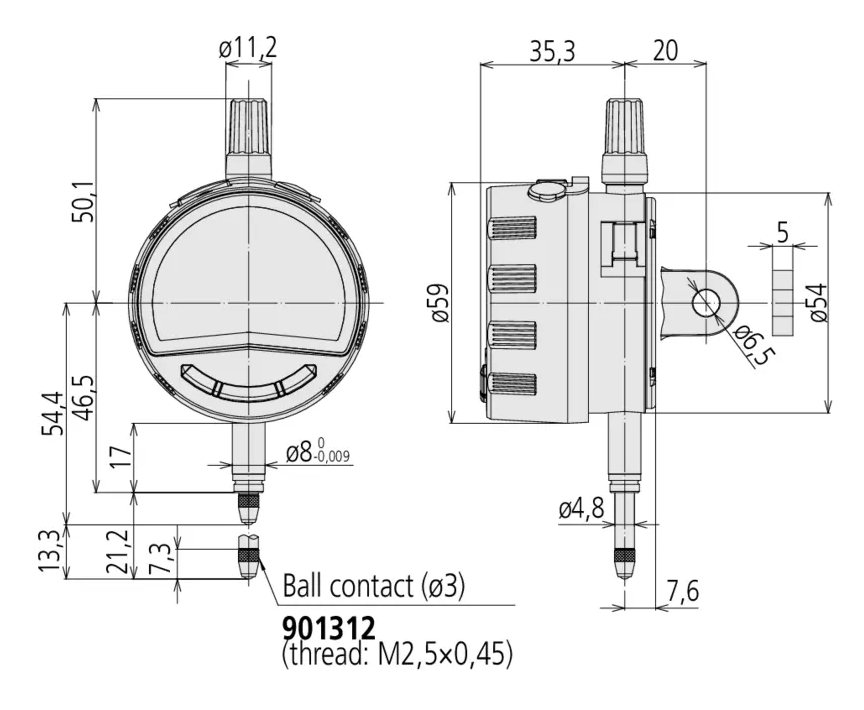 - merací dotyk: guľôčka z tvrdokovu, závit M 2,5 x 0,45 mm