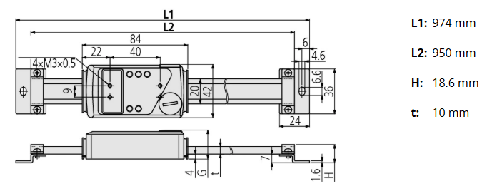 L1/mm: 974 • L2/mm: 950 • H/mm: 18,6 • t/mm: 10