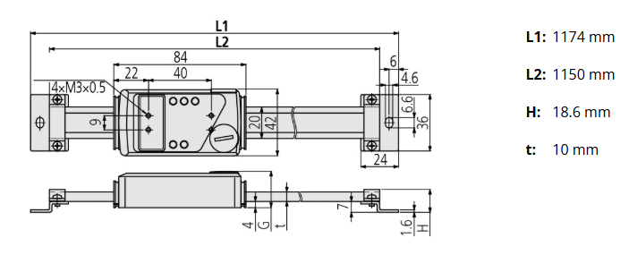 L1/mm: 1174 • L2/mm: 1150 • H/mm: 18,6 • t/mm: 10