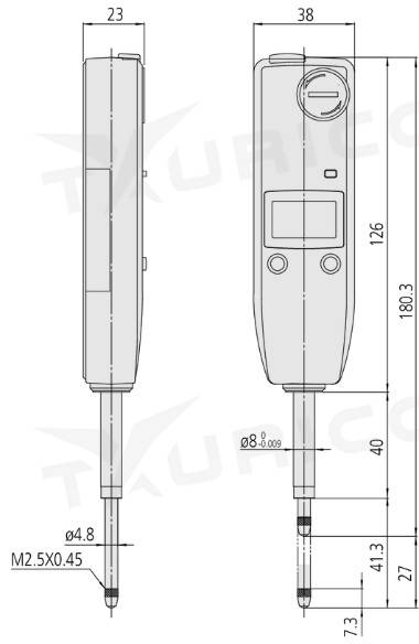 Úzke prevedenie odchýlkomera s rozsahom merania 25,4 mm: