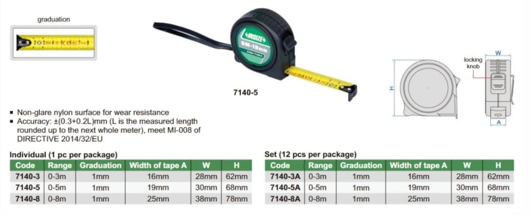 Sada zvinovacích metrov 5 m (12 ks), Insize