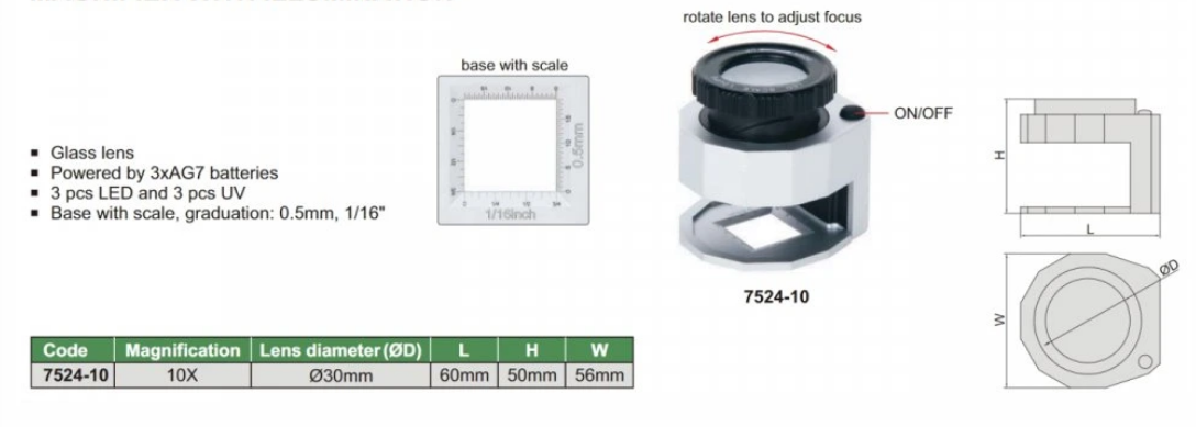 Lupa s LED/UV osvetlením 10x, Insize