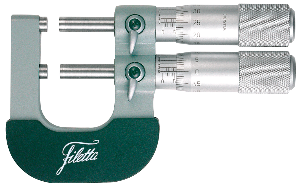 Analógový mikrometer s dvomi vretenami na meranie tolerancií:
