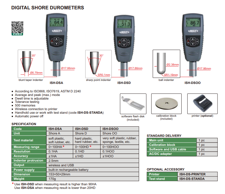Digitálny tvrdomer Shore A 0-100HA, Insize